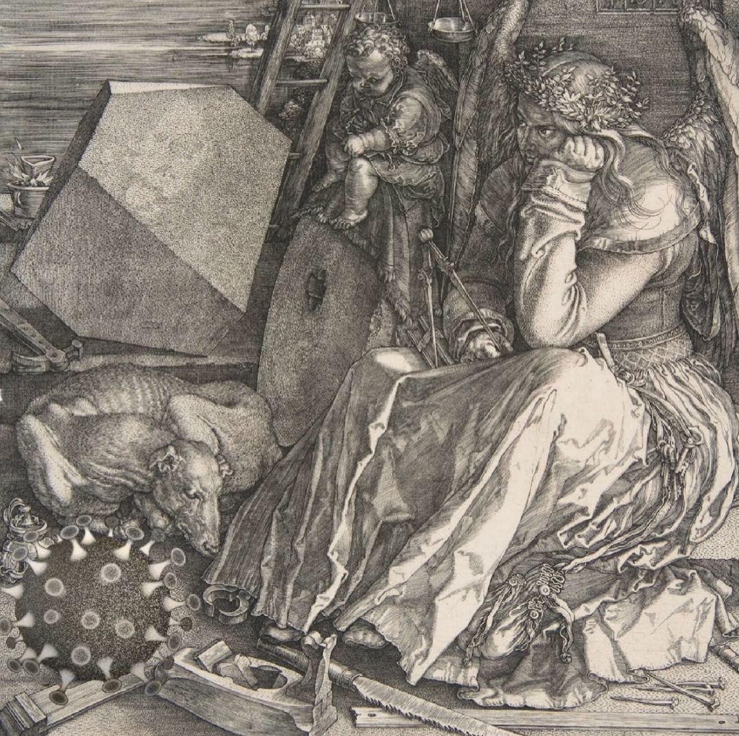 Uigurische Gefangene: Vase mit den acht Unsterblichen. Ming-Dynastie (1573-1620); Screenshot You Tube. - Trauer über die Seuche: Albrecht Dürer, Melencolia, 1514.