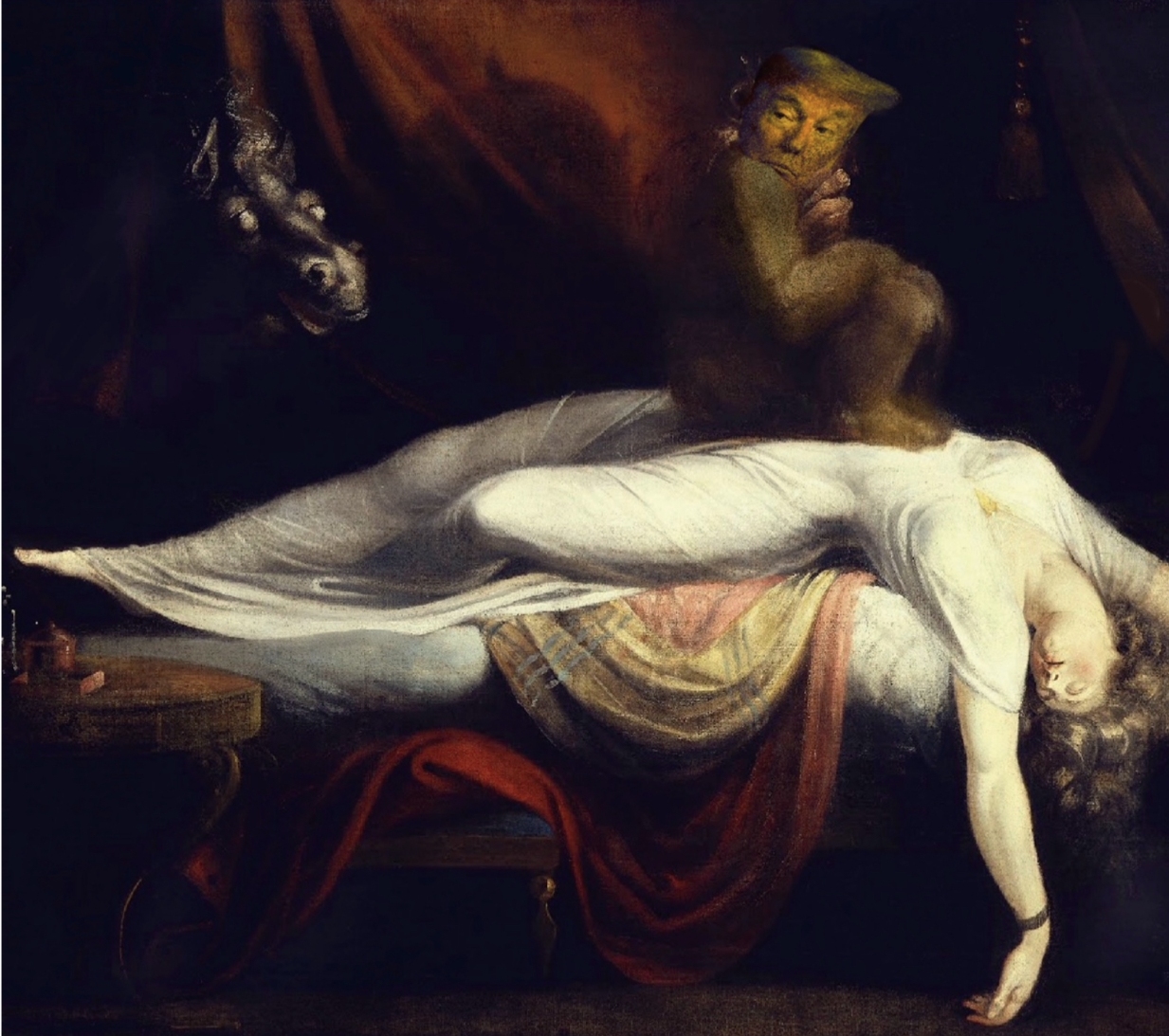 The American Nightmare: Heinrich Füssli, Der Nachtmahr (1781) - Flüchtlingsboot im Mittelmeer: Francisco Goya, El Perro (1819/1823) - Gefängnis in Xinjiang, China: Arnold Böcklin, Die Toteninsel (1883) - Weihnachtsmorgen auf dem Napf: Pieter Bruegel d. Ä., Volkszählung in Bethlehem (1566).