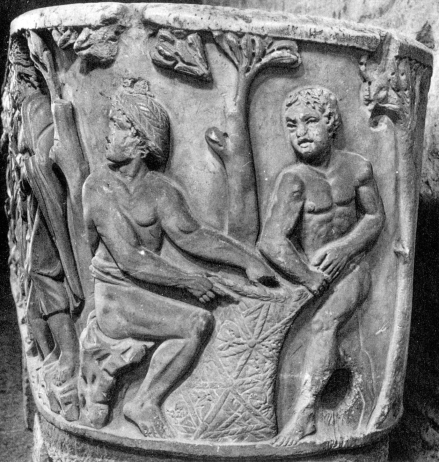 «Rings um uns hoben sich die Leiber aus dem Stein, zusammengedrängt zu Gruppen, ineinander verschlungen oder zu Fragmenten zersprengt, mit einem Torso, einem aufgestützten Arm, einer geborstnen Hüfte, einem verschorften Brocken ihre Gestalt andeutend, immer in den Gebärden des Kampfs, ausweichend, zurückschnellend, angreifend, sich deckend, hochgestreckt oder gekrümmt, hier und da ausgelöscht, doch noch mit einem freistehenden vorgestemmten Fuss, einem gedrehten Rücken, der Kontur einer Wade eingespannt in eine einzige gemeinsame Bewegung. Ein riesiges Ringen, auftauchend aus der grauen Wand, sich erinnernd an seine Vollendung, zurücksinkend zur Formlosigkeit...»